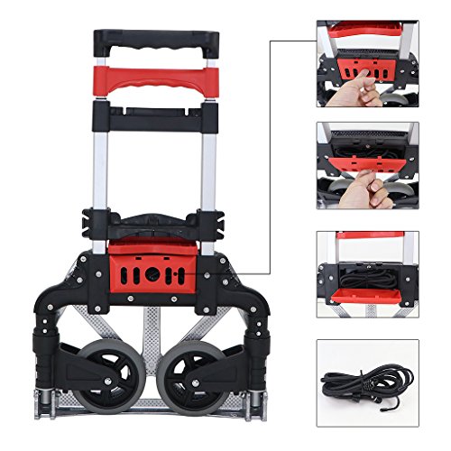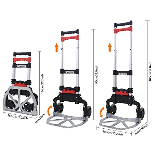 The Finether Multi-Purpose Height-Adjustable Aluminum Folding 2-Wheel Hand Truck Dolly is engineered with toughness and convenience in mind. Made of rust-proof aluminum, this cart is ideal for traveling, and can even be folded and stowed in an airline overhead compartment, and could also be handy for weekend trip by train or car.