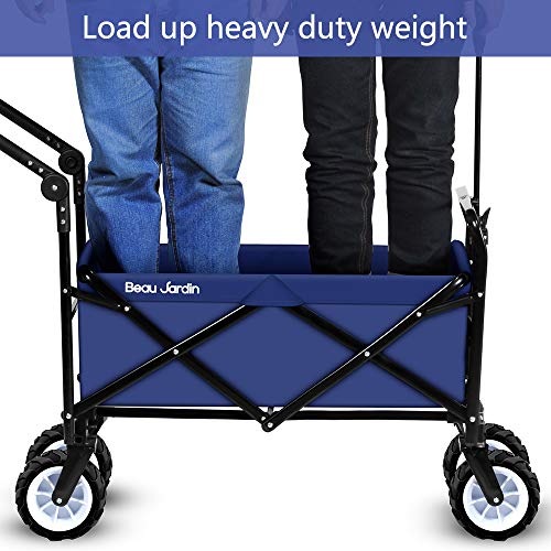 BEAU JARDIN Folding Push Wagon Cart Collapsible Utility Camping Grocery Canvas Fabric Sturdy Portable Rolling…