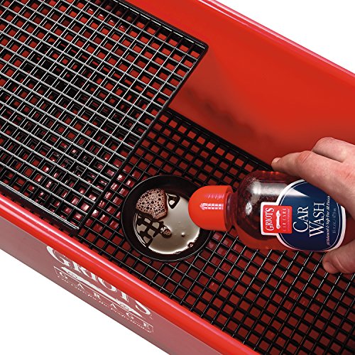 This in point of fact is the ultimate car wash bucket. It has a lower grill so that the heavy debris falls to the bottom and won’t allow your wash mitt to pick it up again. There is a molded-in measuring cup (patented design) in the grill for you to dispense the proper amount of car wash each and every time. The top sieve allows your wash mitt to lay on it without dripping over the side of the bucket. The 2 inch casters are included so as to push the bucket around with your foot if your hands are full. The heavy-duty molded plastic tub holds a massive six gallons of water, has hash marks in liters and gallons on the inside wall and has a wonderful form-fitting handle. The bucket is 19 inches wide, 9 inches across and 9 inches deep. The snap-on lid keeps the water from splashing throughout transportation.