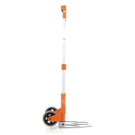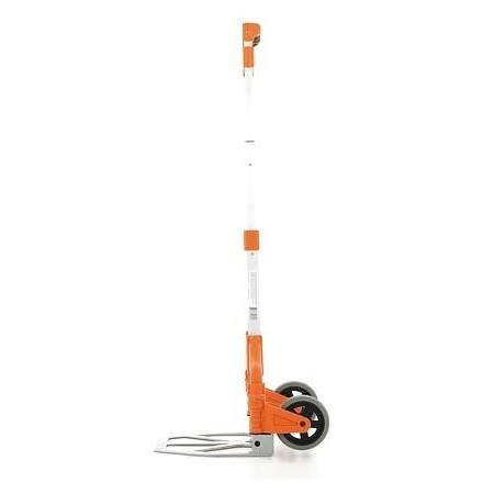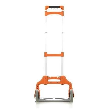Foldable hand truck measures 39 inches tall when extended and folds to a compact 28.5 by 2.5 inches