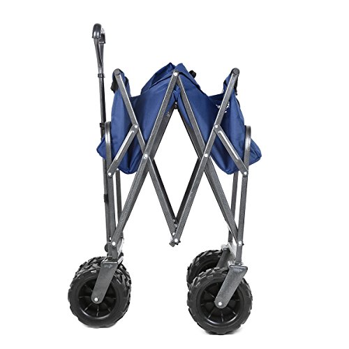 MULTIPURPOSE LARGE CAPACITY WAGON: Folding wagon opens to approx. 35.43″Lx21.25″Wx40.55″H and large interior loading space measures 34.64″Lx20.86″Wx10.23″H , perfect as a goods trolley for transport shopping groceries and great for trips to beach, garden, park, camping, outdoor sporting events on family outings.