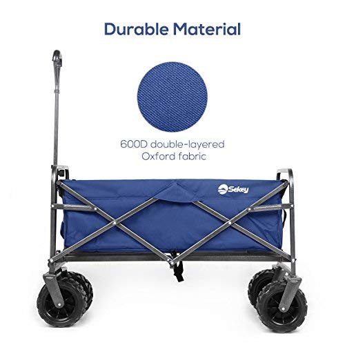 Sekey Folding Wagon Cart Collapsible Outdoor Utility Wagon Heavy Duty Beach Wagon with All-Terrain Wheels, 176 Pound…